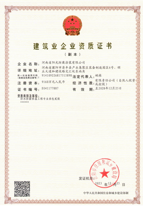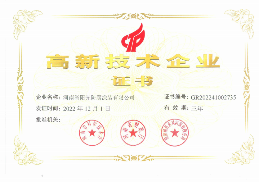 河南省陽光防腐涂裝有限公司為中石油涂料生產定點廠,中海油三新協作中心成員單位,中國腐蝕與防腐學會會員單位